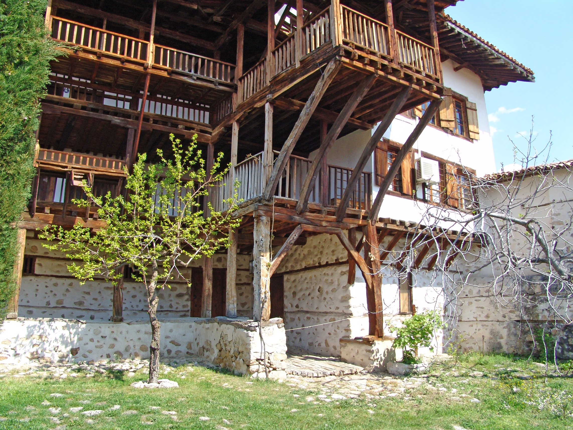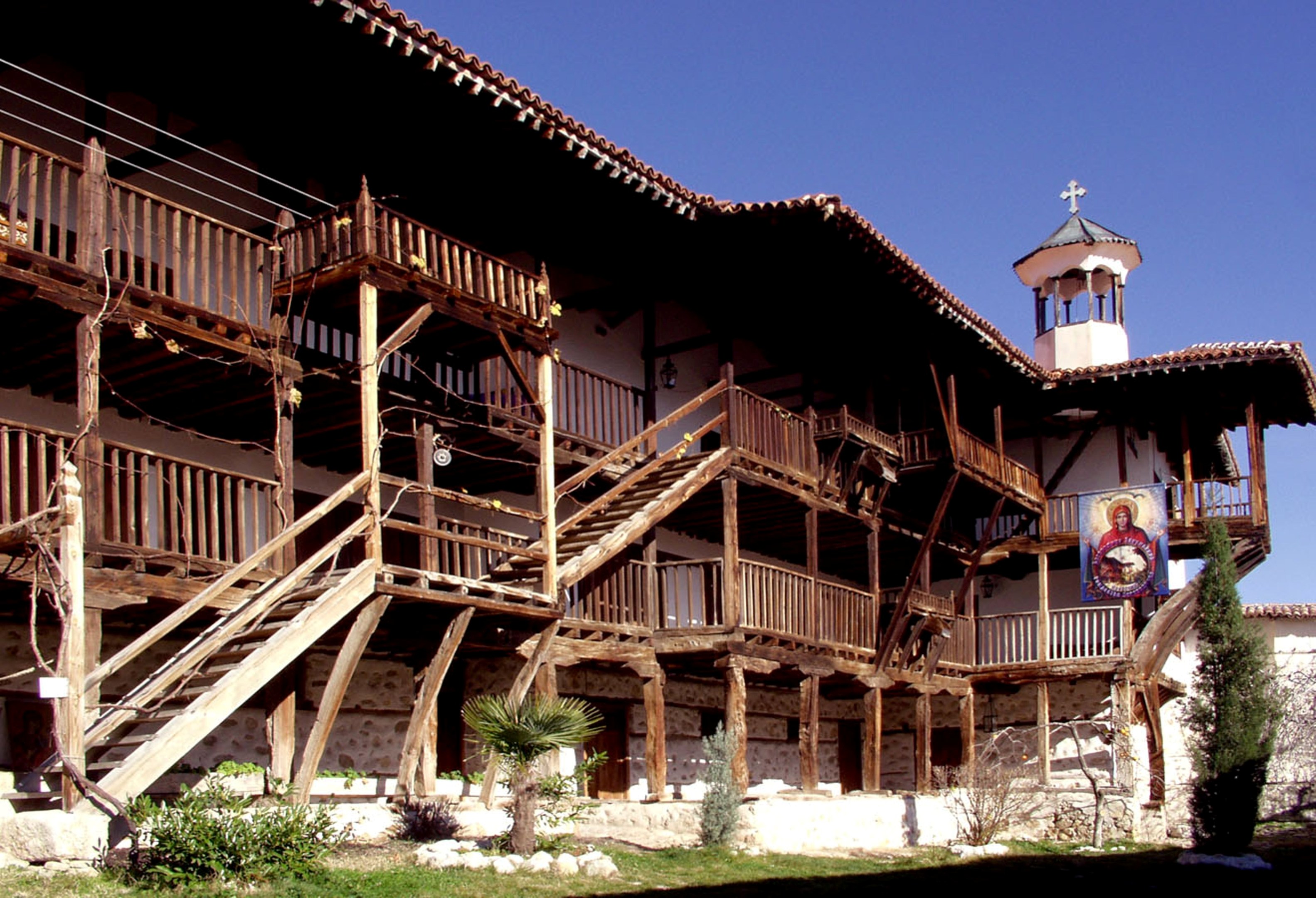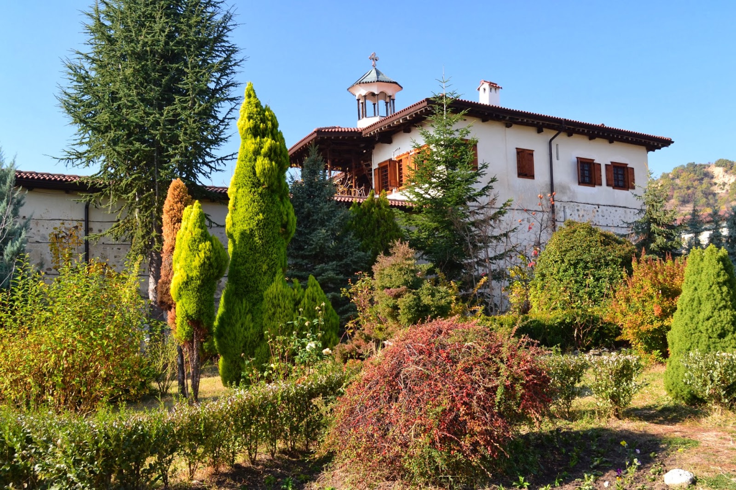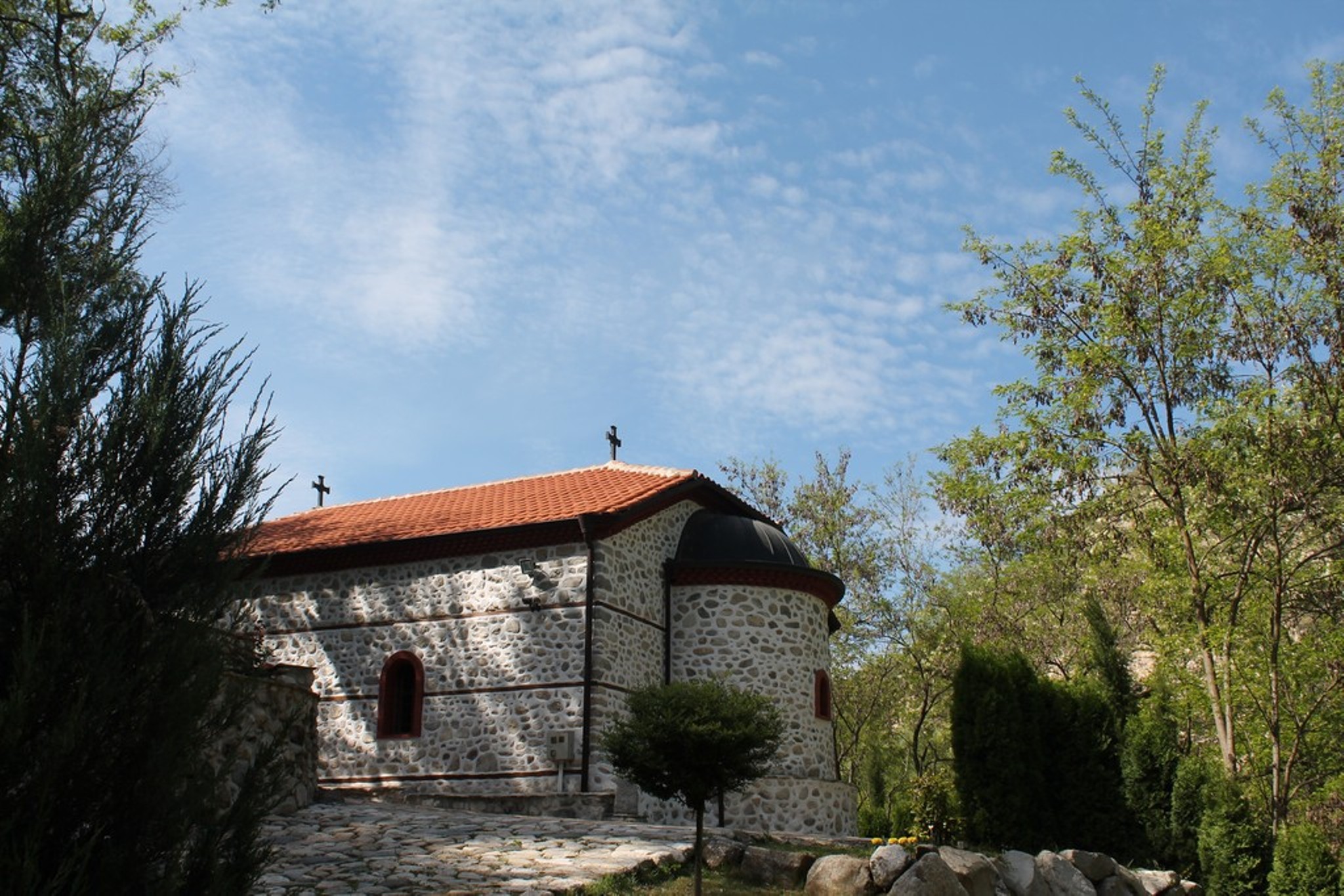 The Church of the Holy Birth of the Holy Mother of God ” the monastery later gave its name to the nearby village of Rozhen. The architecture, construction conservation and restoration of the monastery were completed in 1981. The first restoration and conservation work on frescoes, icons and carvings began in the late 1960s and were completed in the early 1990s. At 200 meters east of the Rozhen Monastery is the tomb of the Bulgarian revolutionary Yane Sandanski, who lived in the monastery at the end of his life. He is buried next to the church. St. Cyril and Methodius, built between 1912 and 1914 on his initiative.